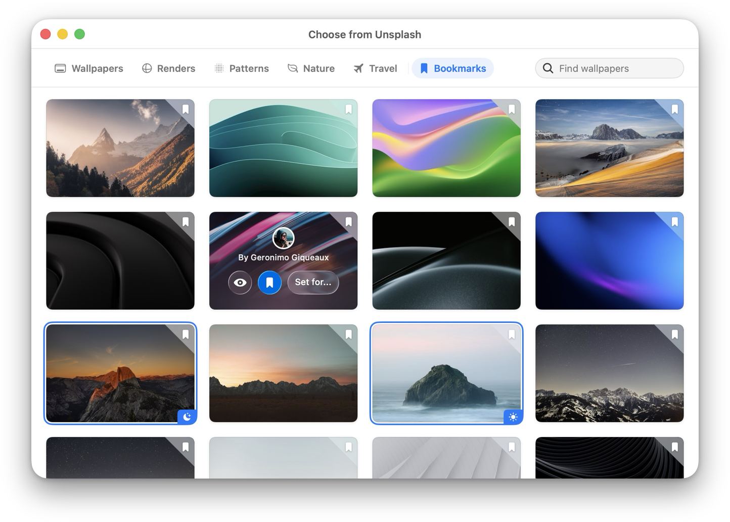 Found the perfect wallpaper but not ready to apply it just yet? The built-in Unsplash browser now includes a bookmarking feature, letting you save your favorite wallpapers for later. Build your own curated collection and apply them whenever you're ready.